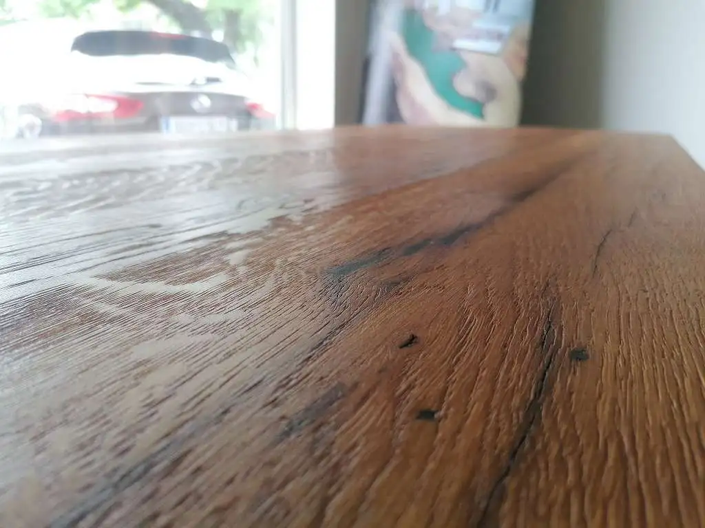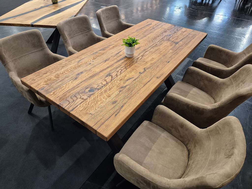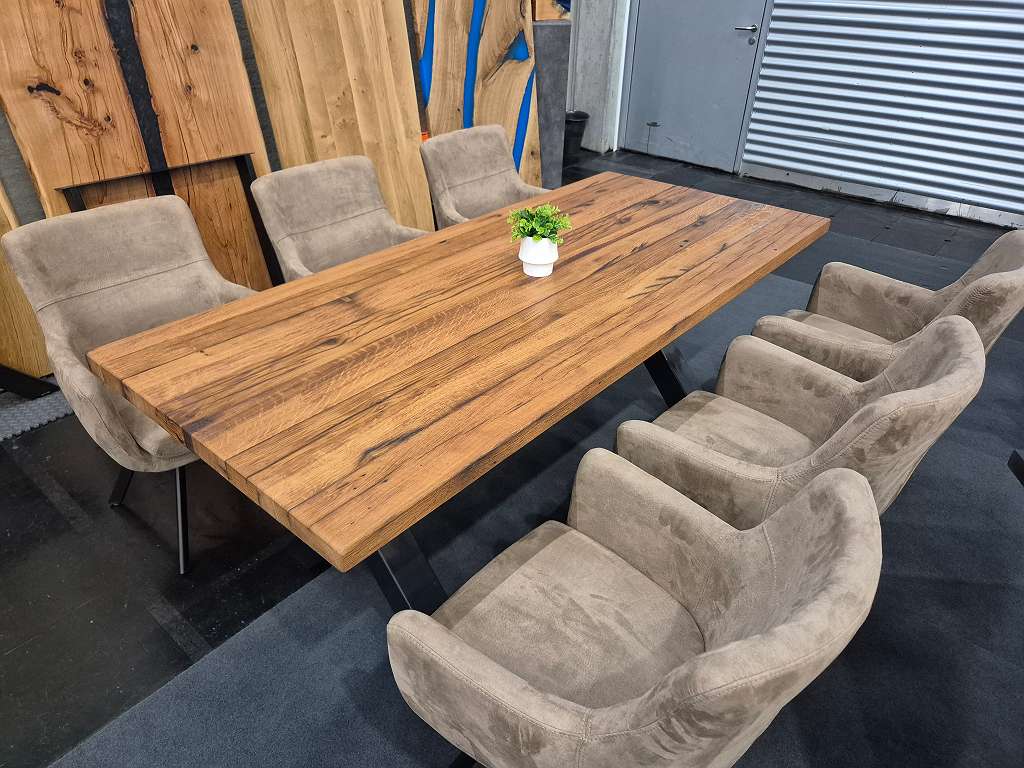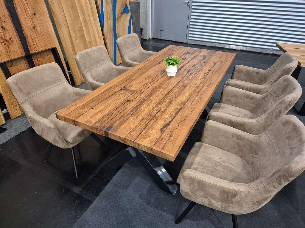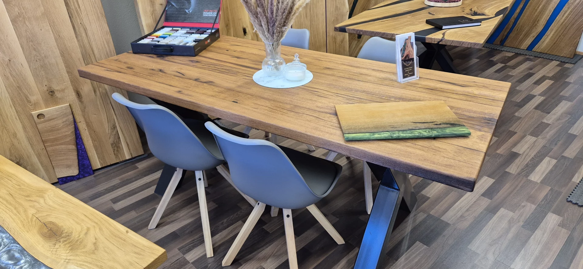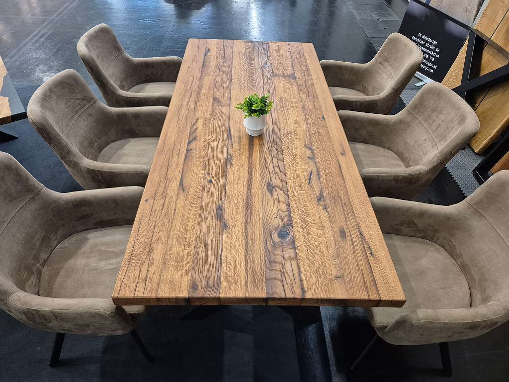 • Massivholztische aus historischen Eichenbalken – gebürstet & geölt