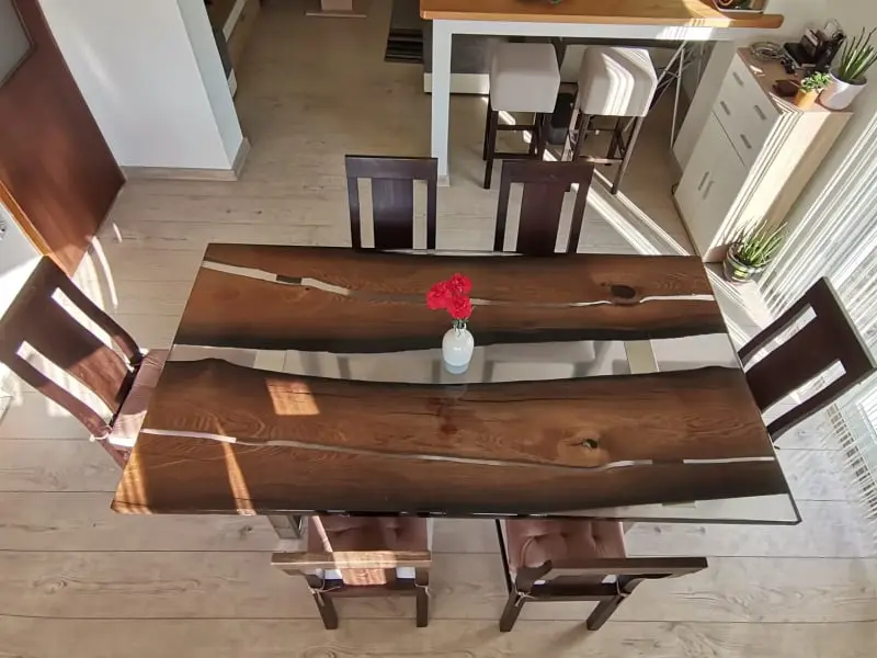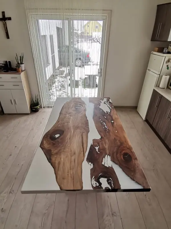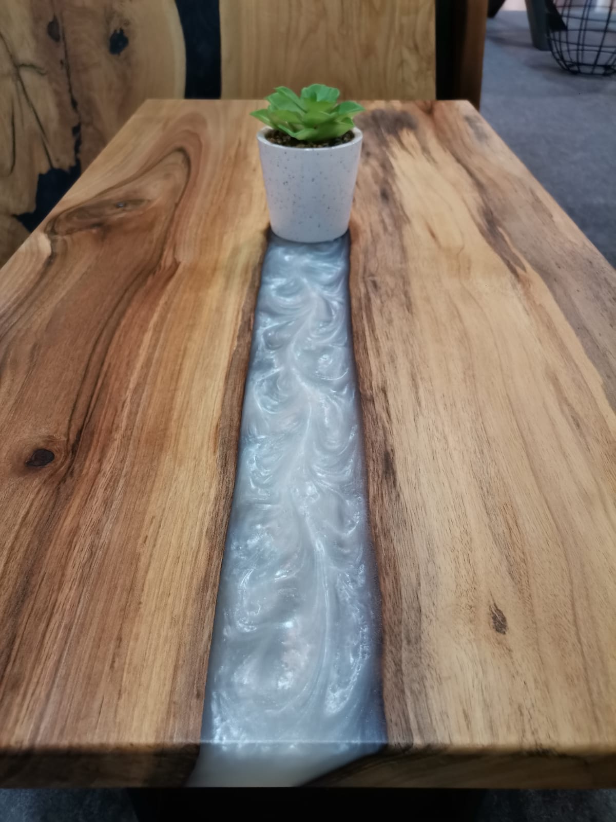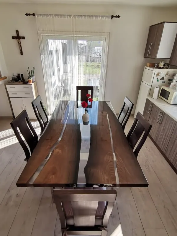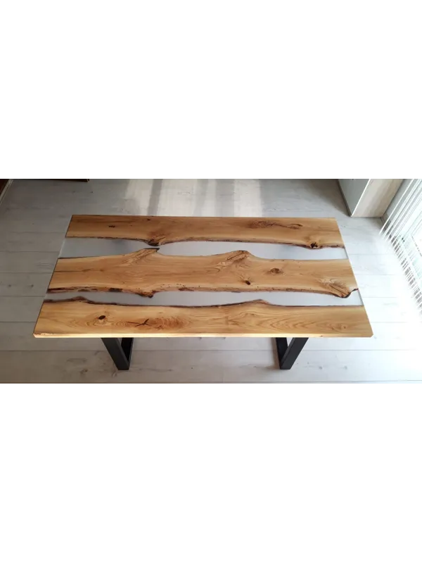 Die „River“-Kollektion steht für eindrucksvolle Massivholz-Esstische mit kunstvoll eingegossenem Epoxidharz in eleganter Flussoptik. Jeder Tisch ist ein handgefertigtes Unikat, das natürliche Holzstruktur mit der Tiefe des Harzes vereint – modern, ausdrucksstark und zeitlos.